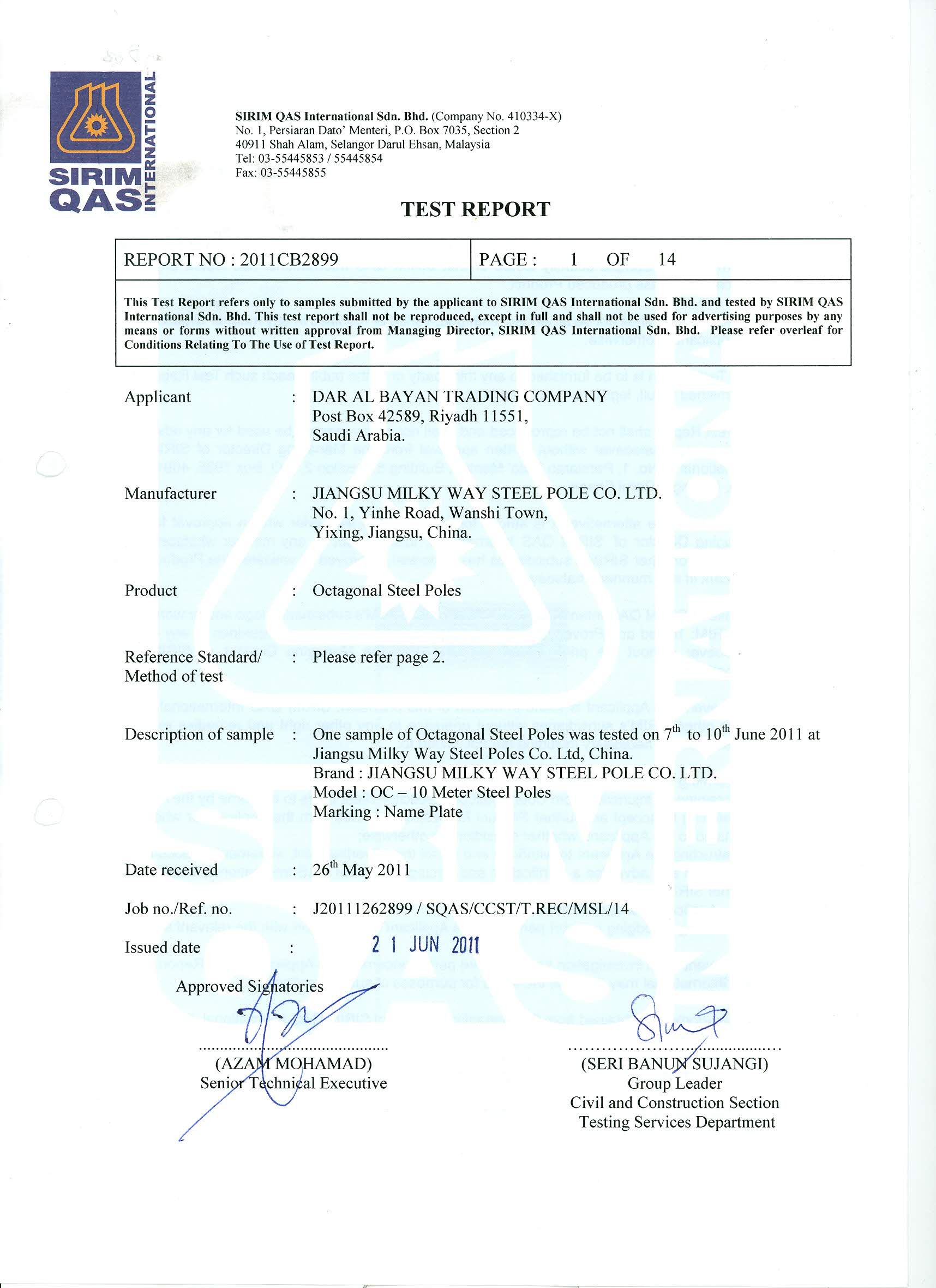 el certificado del molino 1.A publicado por la fábrica del molino con el sello y la firma se debe proporcionar antes descarga el material en nuestra fábrica, si no tenemos nuestra razón para rechazar el material.